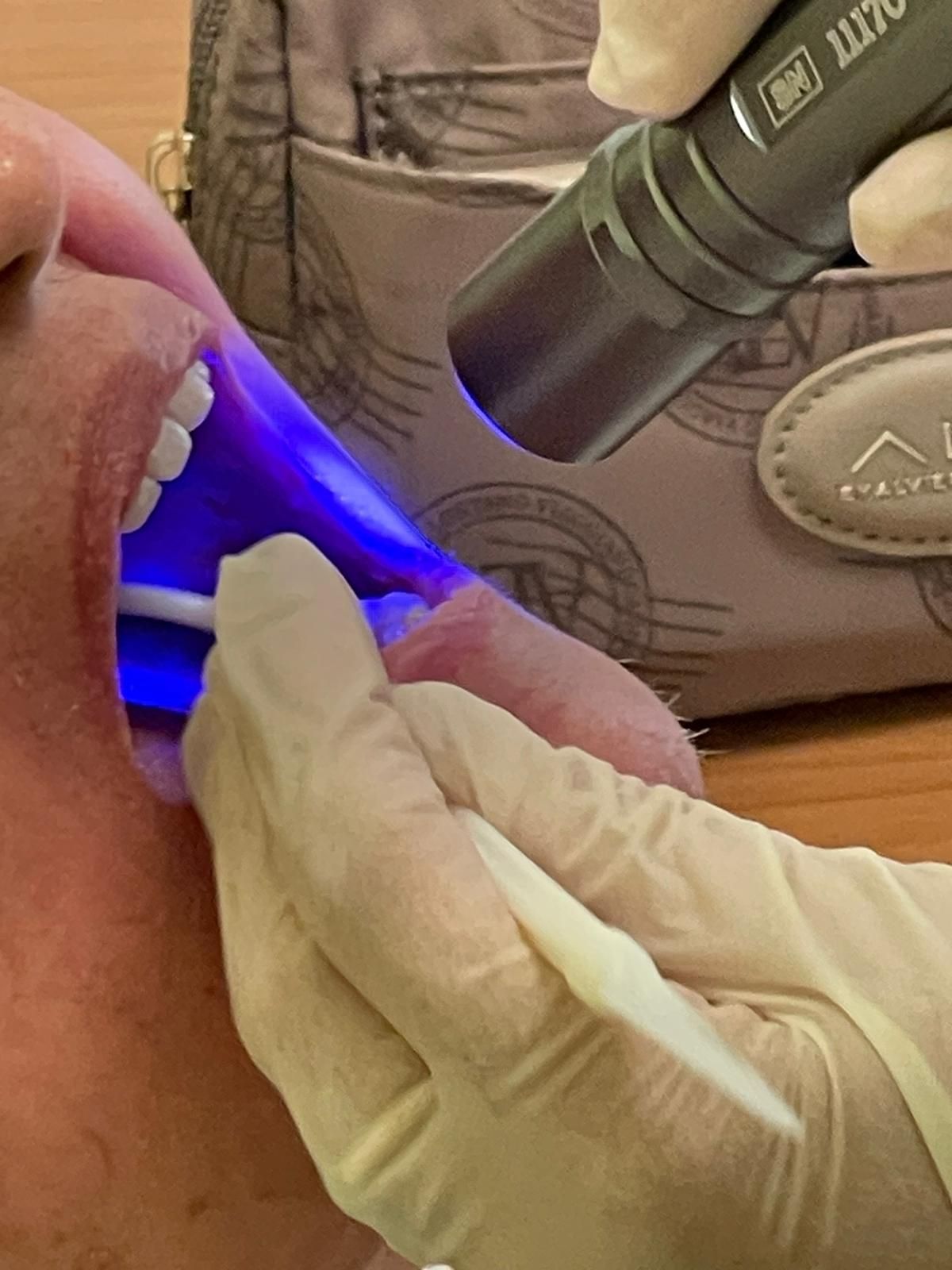 Lo screening orale, come quello effettuato con OralID, è un esame che utilizza una luce speciale per individuare anomalie nelle mucose della bocca che potrebbero essere segni di cancro orale o lesioni precancerose.